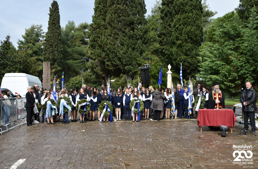 Στη συνέχεια, παρουσία του Προέδρου της Δημοκρατίας, τελέστηκε δοξολογία. Ακολούθησε πομπή προς τον Κήπο των Ηρώων, όπου πραγματοποιήθηκε επιμνημόσυνη δέηση και κατάθεση στεφάνων στον Τύμβο των Ηρώων, τιμώντας τη θυσία των Ελεύθερων Πολιορκημένων.