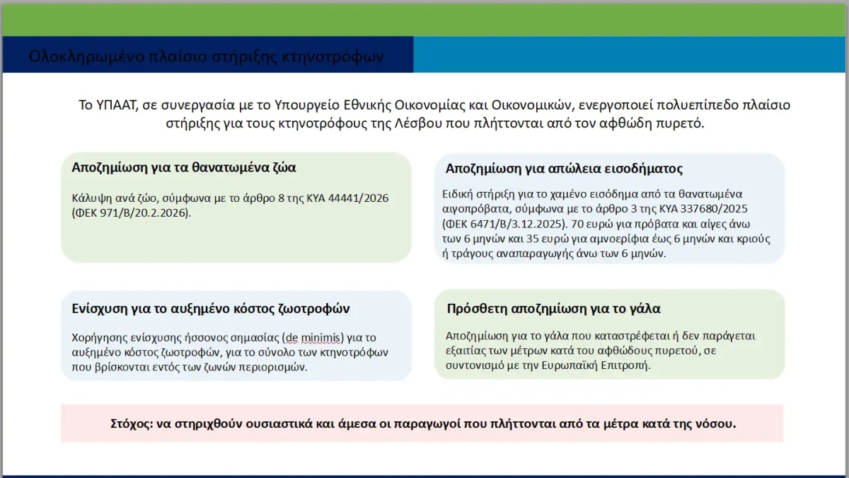 Οι απαντήσεις του ΥΠΑΑΤ για την εξέλιξη του αφθώδους πυρετού στη Λέσβο