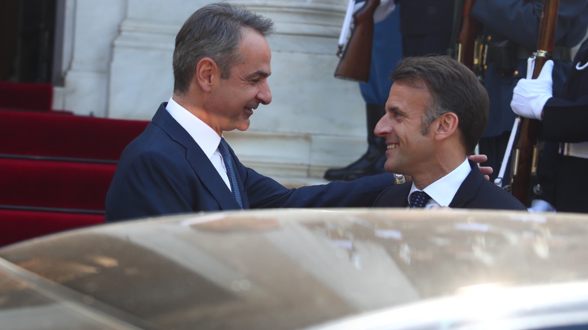 Στο Μέγαρο Μαξίμου Μητσοτάκης και Μακρόν μετά την επίσκεψη στον «Κίμωνα» – Θα υπογράψουν τη νέα αμυντική συνεργασία