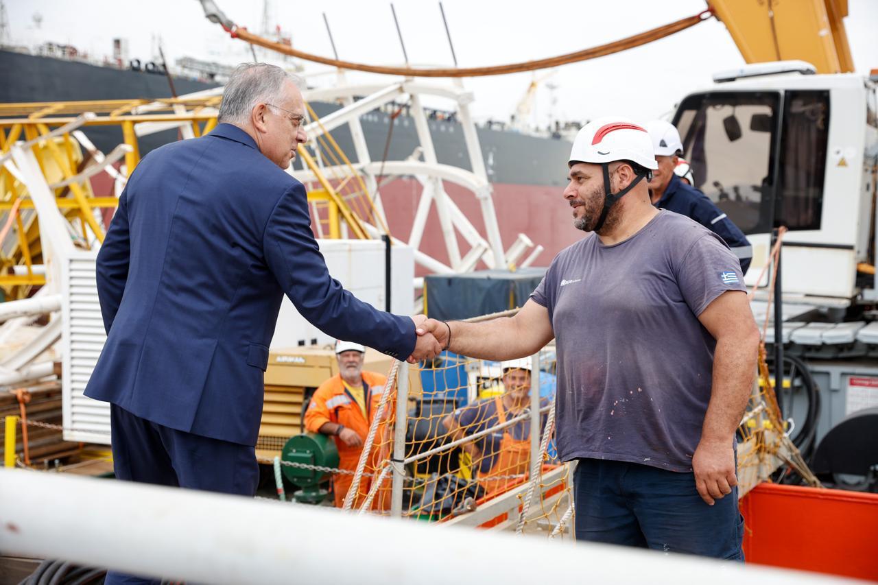 Συνάντηση και επίσκεψη στα Ναυπηγεία Ελευσίνας είχαν σήμερα ο υπουργός Ανάπτυξης, Τάκης Θεοδωρικάκος, ο υπουργός Βιομηχανίας και Ορυκτών Πόρων της Σαουδικής Αραβίας, Bandar Ibrahim Alkhorayef και ο διευθύνων σύμβουλος Εθνικού Οργανισμού Βιομηχανικής Ανάπτυξης της Σαουδικής Αραβίας, Saleh Al-Solami.
