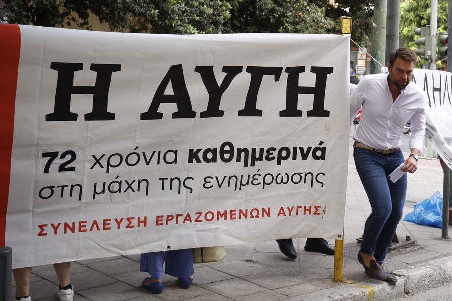 Αποδέκτης της δυσαρέσκειας των εργαζομένων της Αυγής για το “λουκέτο” στο καθημερινό φύλλο της εφημερίδας έγινε ο Στέφανος Κασσελάκης έξω από τα γραφεία της Κουμουνδούρου όπου συνεδριάζει η Πολιτική Γραμματεία του ΣΥΡΙΖΑ.