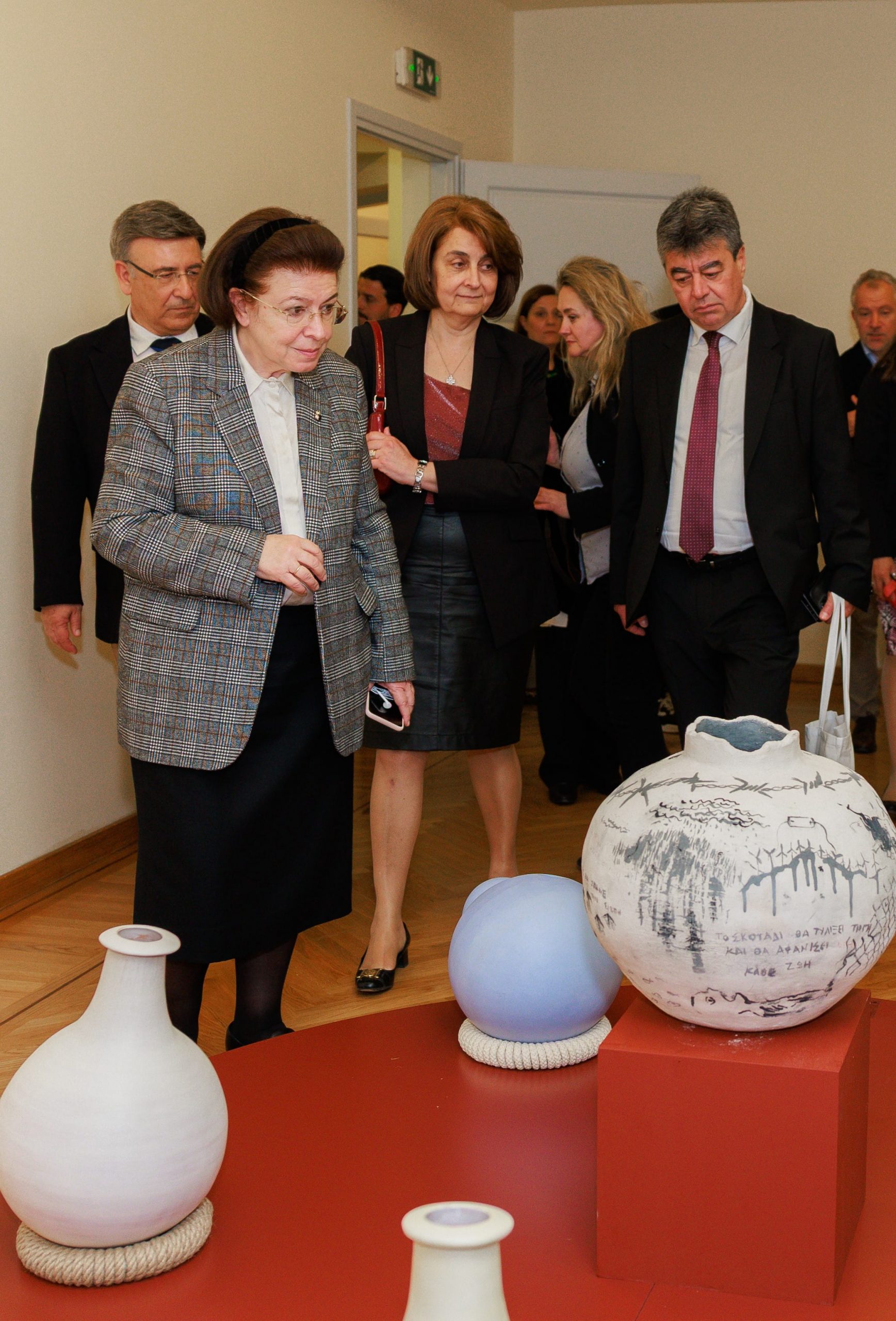 Η πρώτη ημέρα του συνεδρίου ολοκληρώθηκε με τα εγκαίνια από την Υπουργό Πολιτισμού της Ομαδικής Έκθεσης Αποφοίτων από τις 19 Εκπαιδευτικές Δομές Χειροτεχνίας. Συμμετέχουν 208 απόφοιτοι με έργα υφαντικής, κεραμικής και ξυλοτεχνίας που δημιουργήθηκαν στη διάρκεια των εκπαιδευτικών προγραμμάτων (Νοέμβριος 2024 – Δεκέμβριος 2025) που υλοποίησαν τα Κέντρα Διά Βίου Μάθησης των τριών Πανεπιστημίων.