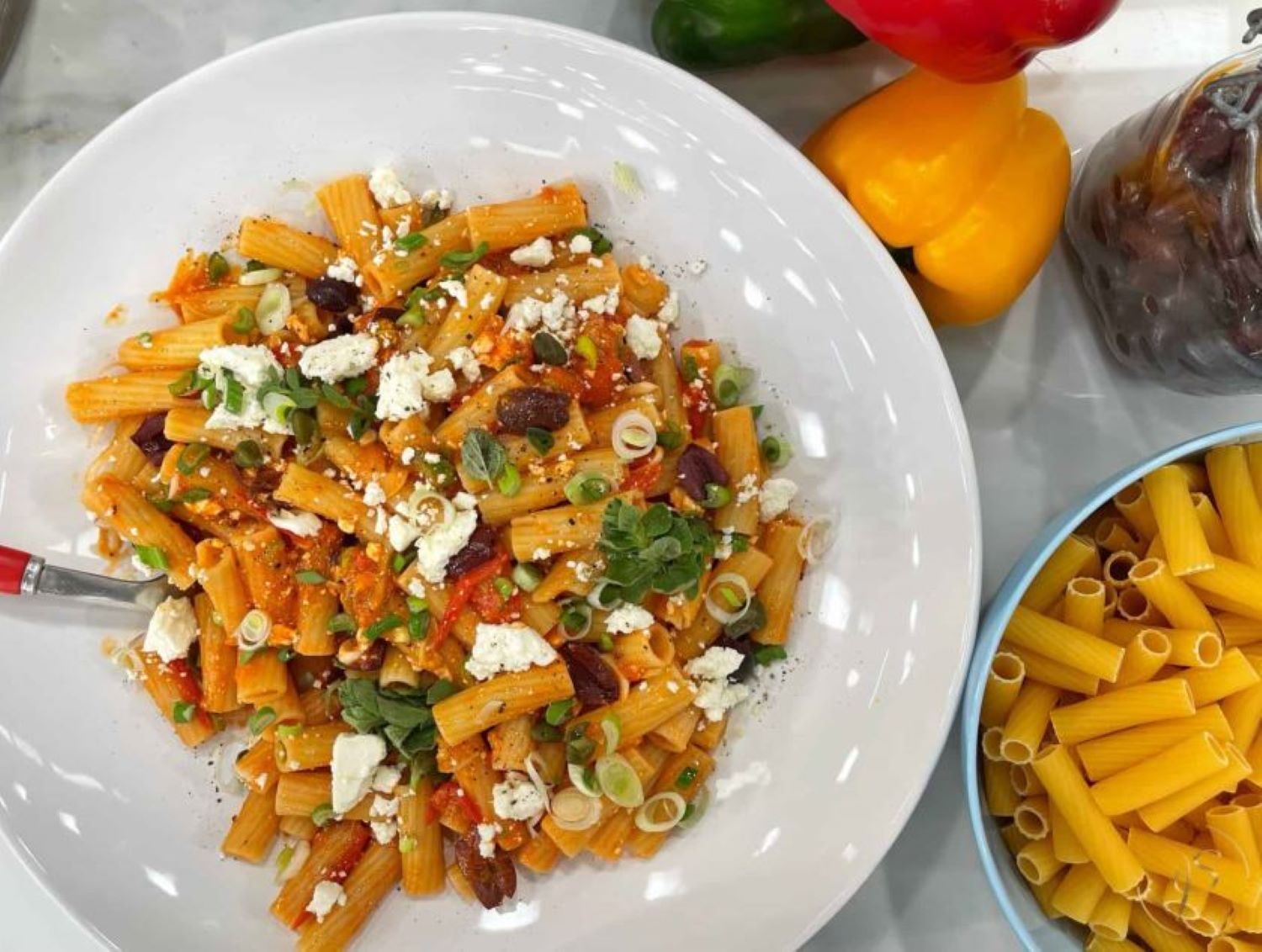 Ριγκατόνι με σάλτσα από ντοματίνια, ελιές, φέτα και ρίγανη από τον Πέτρο Συρίγο